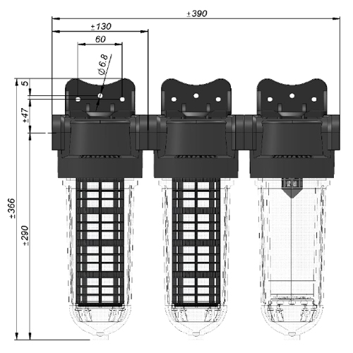Filtertyp: SL240 TRIO-CTN Anschlüsse: ¾ Zoll Durchfluss: 0,5 m³/h bei 0,2 bar ?P Betriebsdruck: 8 bar Max. Druck: 12 bar Max. Betriebstemperatur: 50°C Gewicht: 3.05Kg (3.33 kg mit Verpackung) Verpackung: 390x320x118mm Filterkopf: Glasfaser verstärktes Polypropylen (PP) Filterglocke: StyreneAcrylonitrile(SAN) O’Ring: Nitril Butadien Rubber (NBR) Filterschlüssel: ABS Filterstützkorb: PP + 20% GF Zentrifuge und Abschlussdeckel: Polyethylen (PE) Filtervliese: Polyester (nicht waschbar) oder Nylon (waschbar) Filterfläche + Volumen: 440cm² mit Vliesen + 0.57L mit Aktivkohle CTN-Aktivkohlekartusche: SAN 0.6mm + PP mit 20% GF (Abschlussdeckel) 0.3mm Serienmäßige Ausstattung: Filterfliese 100?m + 25?m, mit Aktivkohle befüllte CTN-Kartusche, Schlüssel, 2 Wandbefestigungen aus PP + 30% GF Sonstige verfügbare Feinheiten: Nicht waschbar: 1 5 10 25 50 100 ?m Waschbar: 150 300 ?m |