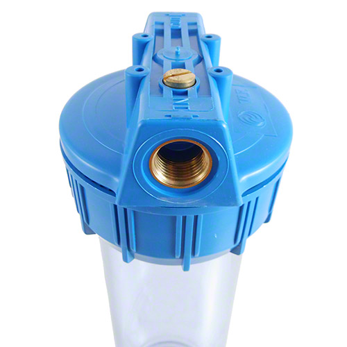 RF Standard Wasserfilter Filtergehäuse 10 Zoll, mit 1 Zoll MS-Innengewinde, blau/transparent
