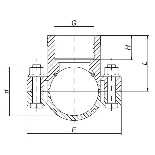 PP Klemmverbinder Typ UNIDELTA für PE Rohre, Anbohrschelle mit Verstärkungsring