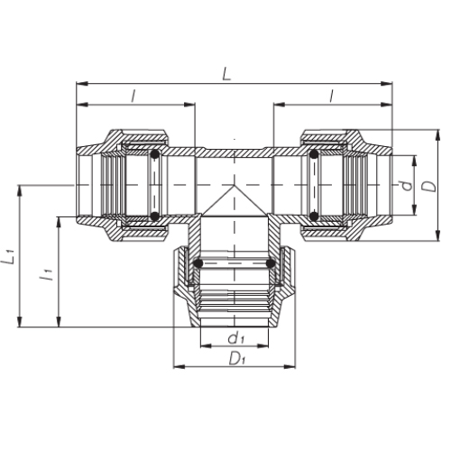 PP Klemmverbinder Typ UNIDELTA für PE Rohre, T-Stück 90° mit vergrößertem Abgang