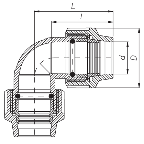 PP Klemmverbinder Typ UNIDELTA für PE Rohre, Winkel 90° egal