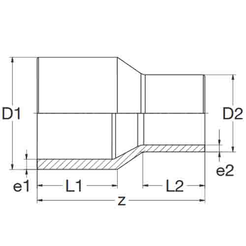 Gespritzte Formteile, für die Heizelement-Stumpf-Schweißung und die Heizwendel- Muffen-Schweißung (nur lange Ausführung); ohne Verschwächungsbeiwerte. Werkstoff PP-RCT (Polypropylen Random-Copolymer Temperature resistant) mit modifizierter Kristallstruktur (beta nukleiert) und erhöhter Temperaturbeständigkeit, Borealis RA7050GN, Farbe RAL 6024 Verkehrsgrün.Das Material entspricht den Anforderungen der aktuellen KTW-Leitlinie des Umwelt-bundesamtes (UBA). Geometrische Eigenschaften Außendurchmesser und Wanddicke entsprechend DIN EN ISO 15874.Toleranzen bei den Z-Maßangaben sind abhängig von der Dimension. Bis d/D 160 = +/- 3 mm. Ab d/D 180 = +/- 10 mm. Betriebsdruck Der Betriebsdruck richtet sich nach der SDR Klasse und dem eingesetzten Rohr. Ausführung Geeignet für Heizelement-Stumpf-Schweißung und Heizwendel-Muffen-Schweißung nach DVS Richtlinie 2207. Schweiß-Geräte und Schweiß-Werkzeuge sollten der DVS Richtlinie 2208 entsprechen. Zertifizierung B-R Formteile unterliegen regelmäßigen internen und externen Qualitätskontrollen. Die Formteile erfüllen die Anforderungen der DIN Certco Richtlinie ZP 10.25.1 und NSF14 + 61 |
