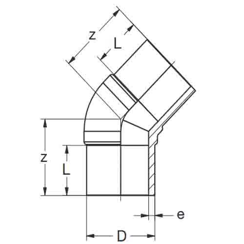 Außendurchmesser und Wanddicke entsprechend DIN EN ISO 15874.Toleranzen bei den Z-Maßangaben sind abhängig von der Dimension. Bis d/D 160 = +/- 3 mm. Ab d/D 180 = +/- 10 mm.