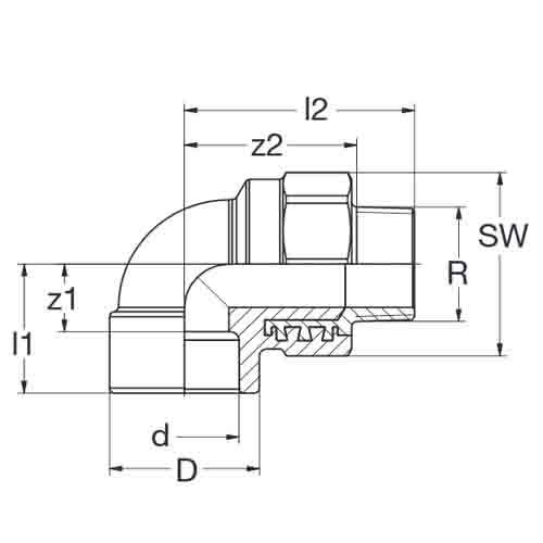 PP-RCT-RG Ü-Winkel 90° AG kegelig grün