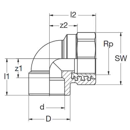 PP-RCT-RG Ü-Winkel 90° IG-zyl grün