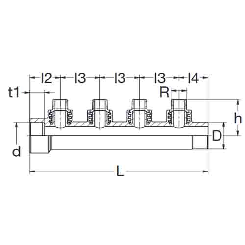 PP-RCT-RG Verteiler AG-kegelig kaskadierbar grün