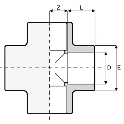PVC Kreuzstück, allseitig Klebemuffe, PN 16, Abgabe nur in Verpackungseinheiten