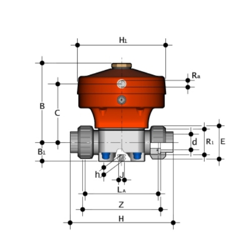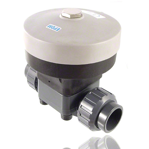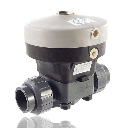 | 2/2-Wege-Membranventil mit pneumatischem Stellantrieb Gehäusewerkstoff: ABS Funktion: normal geöffnet doppelt wirkend (DA) DN15-DN50 (preisgleich zur Funktion NO) Membranwerkstoff: EPDM Steuerdruck: max. 6 bar Steueranschluss: R 1/4' Antriebsfarbe: grau/schwarz Betriebsdruck: einseitig anstehend Innengewinde auf Anfrage Anschluss: Verschraubung mit Klebemuffe |