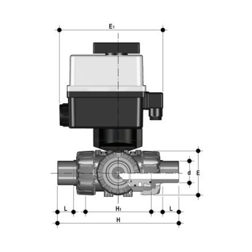 3/2-Wege-Kugelhahn aus PP mit elektrischem Stellantrieb
