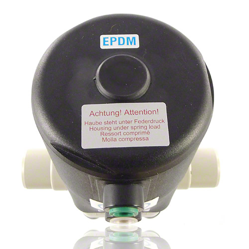 | 2/2-Wege-Membranventil mit pneumatischem Kolben-Stellantrieb Gehäusewerkstoff: PP Funktion: normal geschlossen (NC) Membranwerkstoff: EPDM Steuerdruck: max. 6 bar Steueranschluss (Ra): G 1/4' Antriebsfarbe: schwarz (mit schwarzer Haube) Steueranschluss in Durchflussrichtung: auf Anfrage Betriebsdruck: max. 6 bar einseitig anstehend Anschluss: Schweißstutzen zum Heizelementmuffenschweißen |