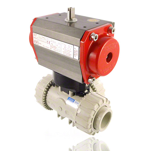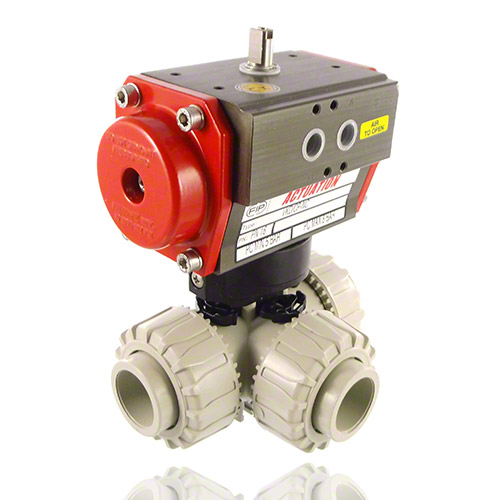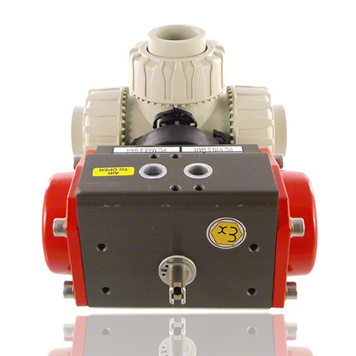 3-Wege-Kugelhahn aus PP mit pneumatischem Stellantrieb