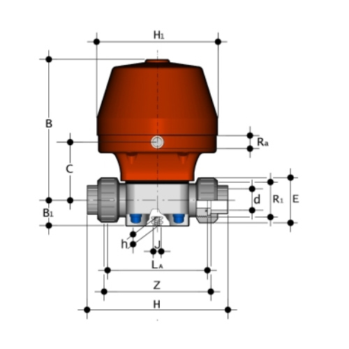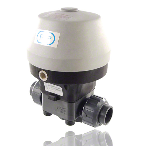 | 2/2-Wege-Membranventil mit pneumatischem Stellantrieb Gehäusewerkstoff: PVC-C Funktion: normal geschlossen (NC) Membranwerkstoff: EPDM Steuerdruck: max. 6 bar Steueranschluss: R 1/4' Antriebsfarbe: grau/schwarz, schwarz auf Anfrage Betriebsdruck: einseitig anstehend Anschluss: Verschraubung mit Klebemuffe |