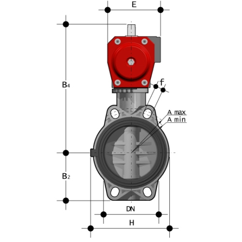 | 2/2-Wege-Absperrklappe mit pneumatischem Stellantrieb Gehäuse: PVC-U Klappenscheibe: PVC-U Funktion: normal geschlossen (NC) Anschluss: Zwischenflanscharmatur Dichtwerkstoff: FPM Steuerdruck: Standard 5 bar reduzierter Steuerdruck: auf Anfrage Steueranschluss: G 1/4' Namur |