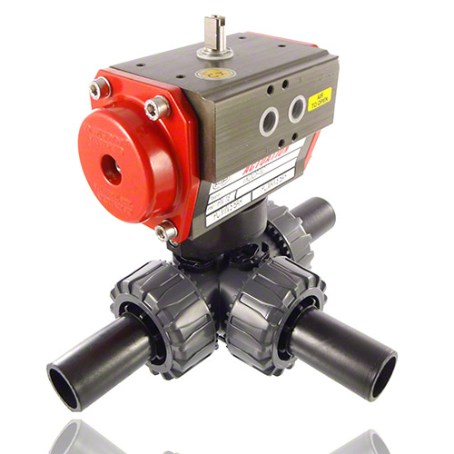PVC U 3/2-Wege-Kugelhahn , pneumatische Ausführung