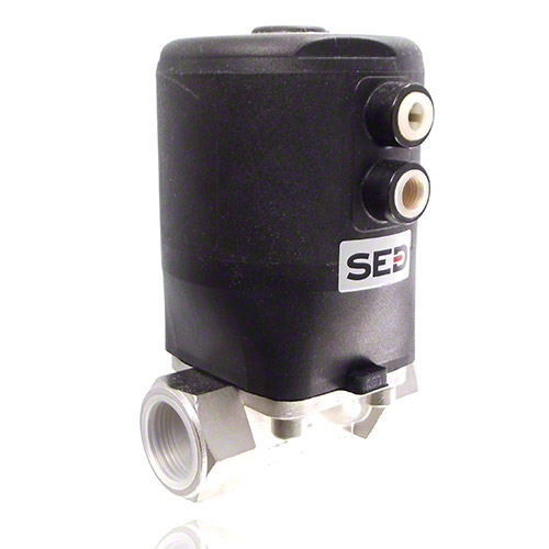 | - Edelstahl-Membranventil - Gewindemuffe 1/2" - Kunststoff-Kolbenantrieb, pneumatisch betätigt NO - Steuerluftanschluss in Durchflussrichtung |
